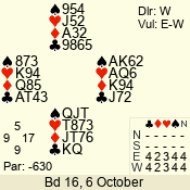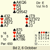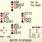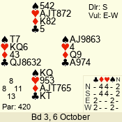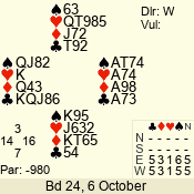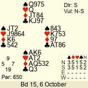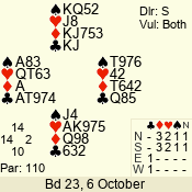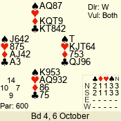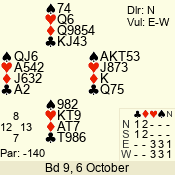 | Con | Dc | Res | Score | Ld | Pairs | Rd | Tbl | | 3 N | N | +2 | 660 | J | 05 - 09 | 6 | 5 |