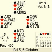 | Con | Dc | Res | Score | Ld | Pairs | Rd | Tbl | 4  | N | +1 | 450 | A | 05 - 09 | 6 | 5 |