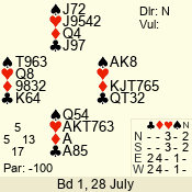 | Con | Dc | Res | Score | Ld | Pairs | Rd | Tbl | | 1 N | S | = | 90 | J | 20 - 09 | 12 | 20 |