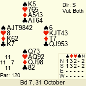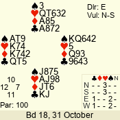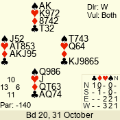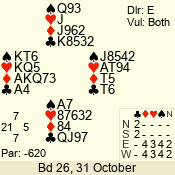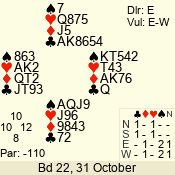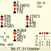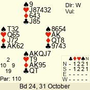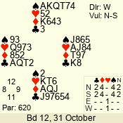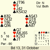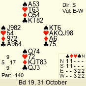 | 3 NT | W | +1 | -630 | 3 | 01 - 02 | 13 | 1 |
