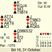 | 3 NT | W | +1 | -630 | 2 | 07 - 01 | 7 | 7 |