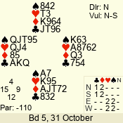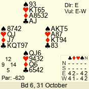 | 3 NT | W | +1 | -630 | 3 | 03 - 06 | 11 | 3 |