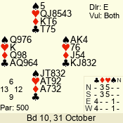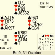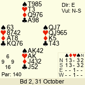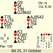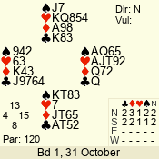 | 3 NT | W | +1 | -630 | 3 | 01 - 02 | 13 | 1 |