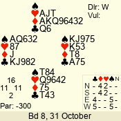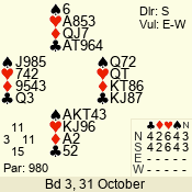 | 3 NT | W | -2 | 100 | 8 | 11 - 11 | 1 | 11 |