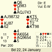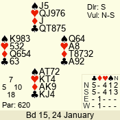 | 3 NT | E | +1 | -430 | 2 | 14 - 11 | 11 | 1 |