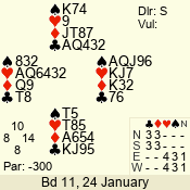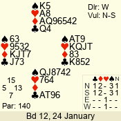 | 3 NT | S | -3 | -150 | 2 | 14 - 13 | 13 | 1 |
