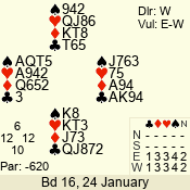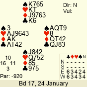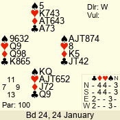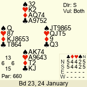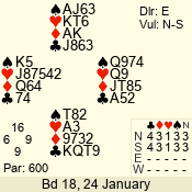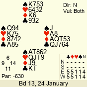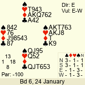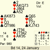 | 3 NT | E | +1 | -430 | 2 | 04 - 10 | 13 | 6 |