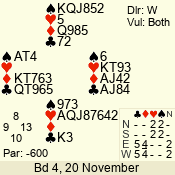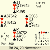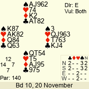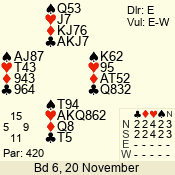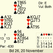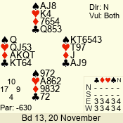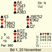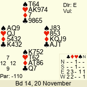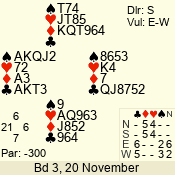 | 3 NT | E | +1 | -430 | 3 | 10 - 09 | 2 | 10 |