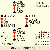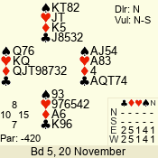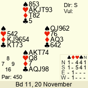 | 3 NT | S | +1 | 430 | 8 | 05 - 11 | 10 | 5 |