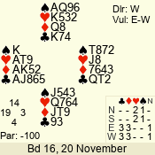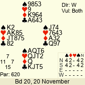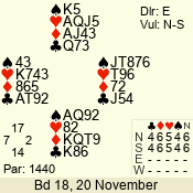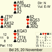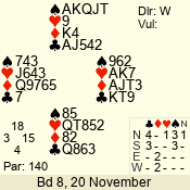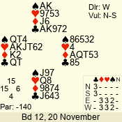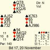 | 3 NT | W | +1 | -630 | 2 | 12 - 11 | 2 | 12 |