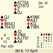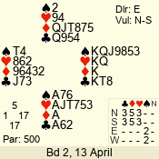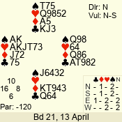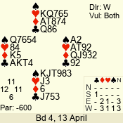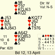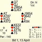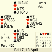| 3 NT | S | +1 | 630 | 4 | 05 - 03 | 3 | 5 |