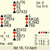 | 3 NT | E | +1 | -430 | 4 | 03 - 07 | 4 | 3 |