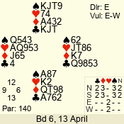 | 3 NT | S | +2 | 660 | A | 07 - 02 | 6 | 7 |
