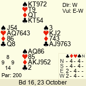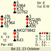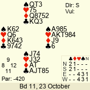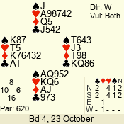 | 3 NT | W | +1 | -430 | T | 04 - 02 | 3 | 4 |