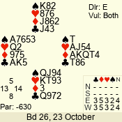 | 3 NT | E | +1 | -630 | 2 | 03 - 06 | 7 | 3 |