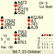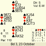 | 3 NT | W | +1 | -430 | 3 | 01 - 05 | 6 | 1 |