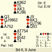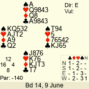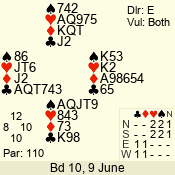 | Con | Dc | Res | Score | Ld | Pairs | Rd | Tbl | 5 x | E | -2 | 500 | T | 11 - 11 | 1 | 11 |