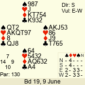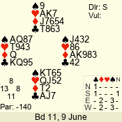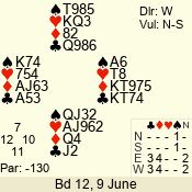 | 3 NT | W | +2 | -460 | Q | 07 - 11 | 10 | 7 |
