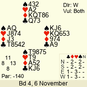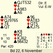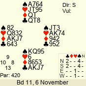 | Con | Dc | Res | Score | Ld | Pairs | Rd | Tbl | 4  | S | = | 420 | T | 13 - 06 | 2 | 7 |
