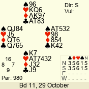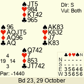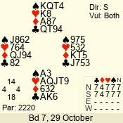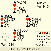 | Con | Dc | Res | Score | Ld | Pairs | Rd | Tbl | | 3 N | S | +3 | 490 | 2 | 02 - 02 | 1 | 2 |