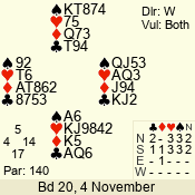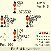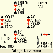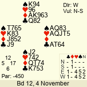 | Con | Dc | Res | Score | Ld | Pairs | Rd | Tbl | | 3 N | W | -5 | 500 | 9 | 20 - 12 | 12 | 1 |