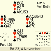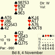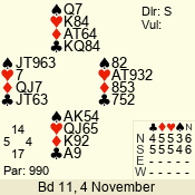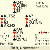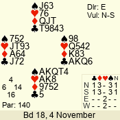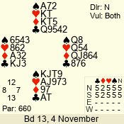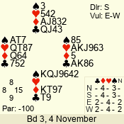 | Con | Dc | Res | Score | Ld | Pairs | Rd | Tbl | | 3 N | E | -3 | 300 | K | 01 - 08 | 4 | 8 |