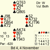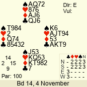 | Con | Dc | Res | Score | Ld | Pairs | Rd | Tbl | | 3 N | W | -4 | 400 | 4 | 14 - 06 | 10 | 9 |