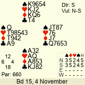 | Con | Dc | Res | Score | Ld | Pairs | Rd | Tbl | | 3 N | N | +3 | 490 | 3 | 20 - 03 | 3 | 1 |