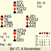 | Con | Dc | Res | Score | Ld | Pairs | Rd | Tbl | | 1 N x | E | -2 | 300 | A | 17 - 05 | 6 | 4 |