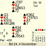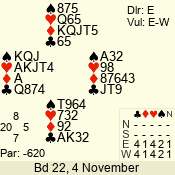 | Con | Dc | Res | Score | Ld | Pairs | Rd | Tbl | 4  | E | = | -420 | K | 18 - 06 | 12 | 3 |