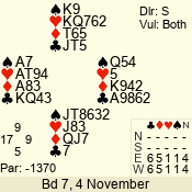 | Con | Dc | Res | Score | Ld | Pairs | Rd | Tbl | 4  | W | = | -420 | 4 | 16 - 09 | 11 | 6 |
