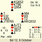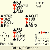 | 3 NT | S | +1 | 430 | 4 | 07 - 13 | 10 | 7 |