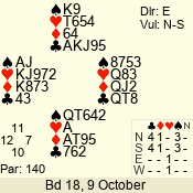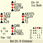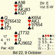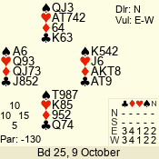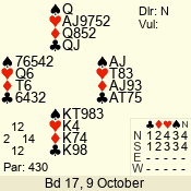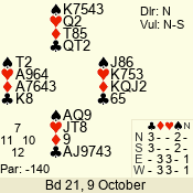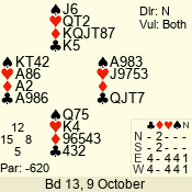 | 3 NT | S | +1 | 430 | 4 | 13 - 10 | 4 | 13 |