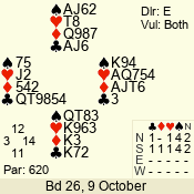 | 3 NT | S | +1 | 430 | 4 | 11 - 06 | 6 | 11 |