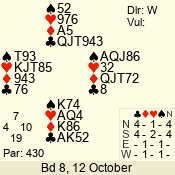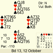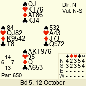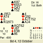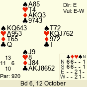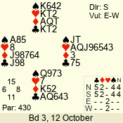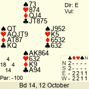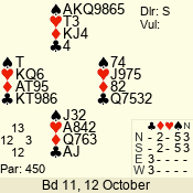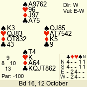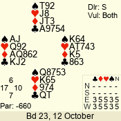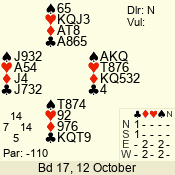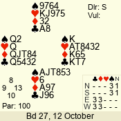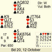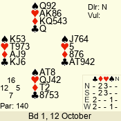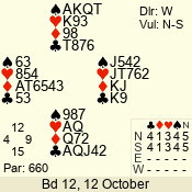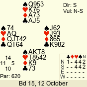 | 3 NT | S | +1 | 630 | 5 | 04 - 01 | 4 | 4 |