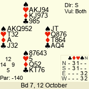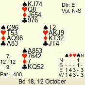 | 3 NT | W | +1 | -630 | 5 | 02 - 03 | 7 | 2 |