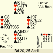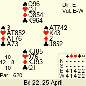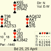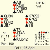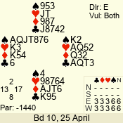 | Con | Dc | Res | Score | Ld | Pairs | Rd | Tbl | | 1 N | N | +1 | 120 | 6 | 10 - 04 | 13 | 3 |