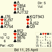 | Con | Dc | Res | Score | Ld | Pairs | Rd | Tbl | 4  | S | = | 420 | 4 | 03 - 02 | 13 | 4 |