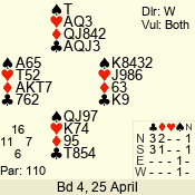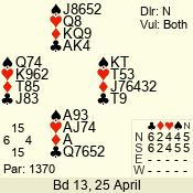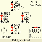 | Con | Dc | Res | Score | Ld | Pairs | Rd | Tbl | | 3 N | W | -3 | 150 | J | 09 - 01 | 2 | 2 |