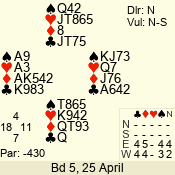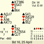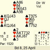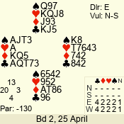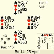 | Con | Dc | Res | Score | Ld | Pairs | Rd | Tbl | | 2 N | E | -3 | 300 | 5 | 15 - 02 | 4 | 8 |