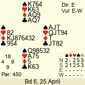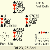 | Con | Dc | Res | Score | Ld | Pairs | Rd | Tbl | 4 x | N | = | 590 | A | 02 - 06 | 10 | 1 |