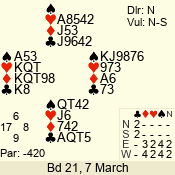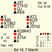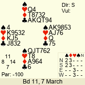 | 3 NT | S | +1 | 430 | 6 | 03 - 06 | 9 | 3 |