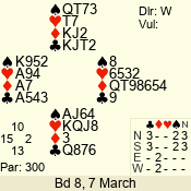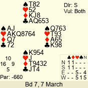 | 3 NT | W | +1 | -430 | 4 | 07 - 06 | 2 | 7 |