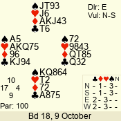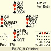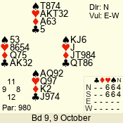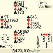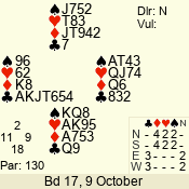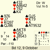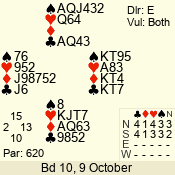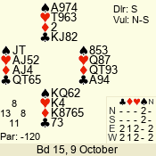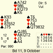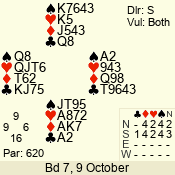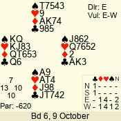 | Con | Dc | Res | Score | Ld | Pairs | Rd | Tbl | | 3 N | N | +1 | 630 | 7 | 03 - 06 | 10 | 3 |