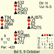 | Con | Dc | Res | Score | Ld | Pairs | Rd | Tbl | 4  | S | = | 420 | A | 04 - 07 | 10 | 4 |