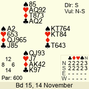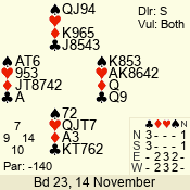 | Con | Dc | Res | Score | Ld | Pairs | Rd | Tbl | | 3 N | N | +1 | 430 | 2 | 11 - 10 | 2 | 11 |