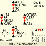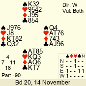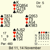 | Con | Dc | Res | Score | Ld | Pairs | Rd | Tbl | | 3 N | N | +1 | 430 | 2 | 11 - 10 | 2 | 11 |