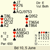 | Con | Dc | Res | Score | Ld | Pairs | Rd | Tbl | 4  | S | +1 | 650 | 7 | 01 - 06 | 4 | 1 |