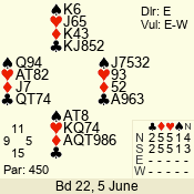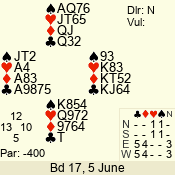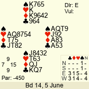 | Con | Dc | Res | Score | Ld | Pairs | Rd | Tbl | 4  | N | +1 | 450 | 8 | 05 - 05 | 1 | 5 |