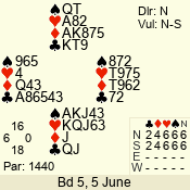 | Con | Dc | Res | Score | Ld | Pairs | Rd | Tbl | | 6 N | N | = | 1440 | 5 | 03 - 04 | 8 | 3 |